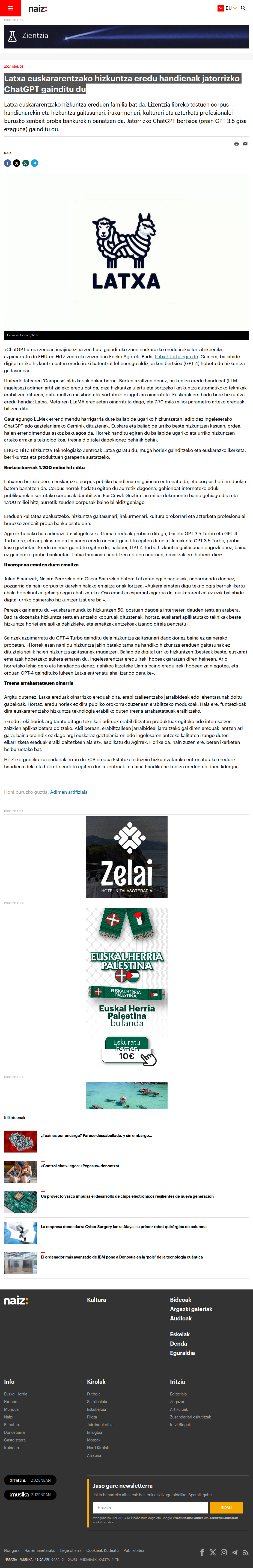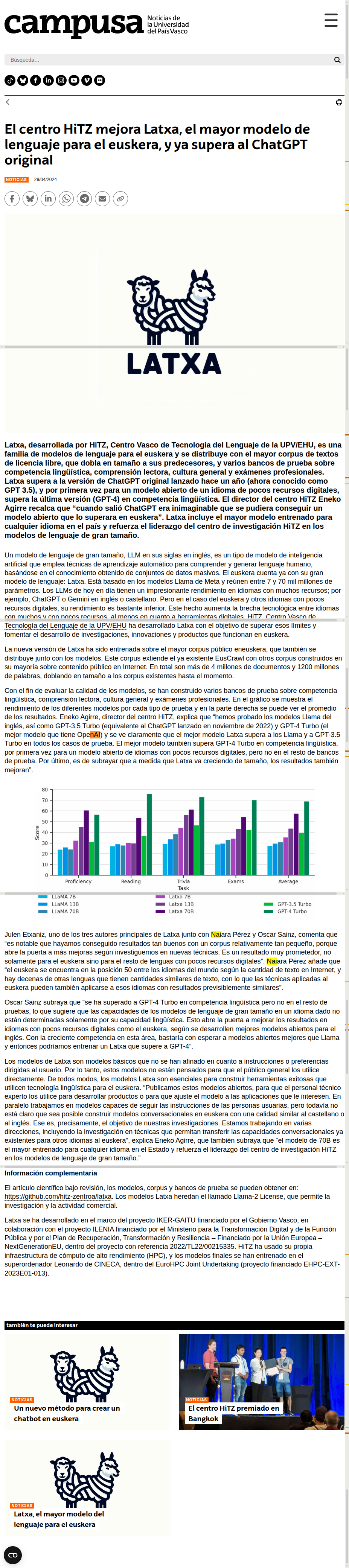 Latxa hizkuntza eredua GPT-4ren parean geratu da lehiaketa batean