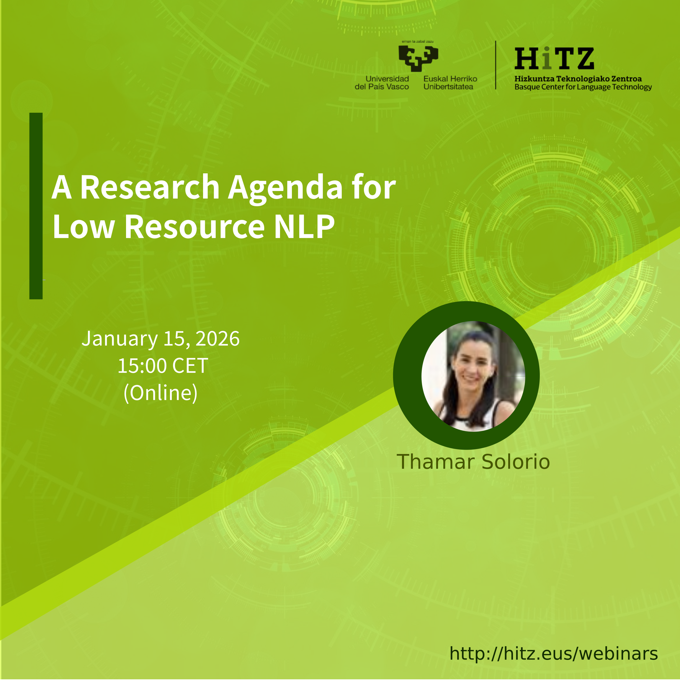 Thamar Solorio is a professor of NLP at MBZUAI where she also serves as Vice Provost for Faculty Excellence and Advancement. Her research interests include NLP for low-resource settings and multilingual data, including code-switching and information extraction. More recently, she has been exploring language and vision problems, focusing on developing inclusive NLP. She served two terms as an elected board member of the North American Chapter of the Association of Computational Linguistics (NAACL) and was PC co-chair for NAACL 2019, and recently stepped down from being co-Editor in Chief of the ACL Rolling Review Initiative (ARR). She was the general chair of the 2024 Conference on Empirical Methods in Natural Language Processing (EMNLP).